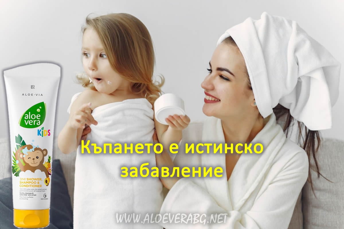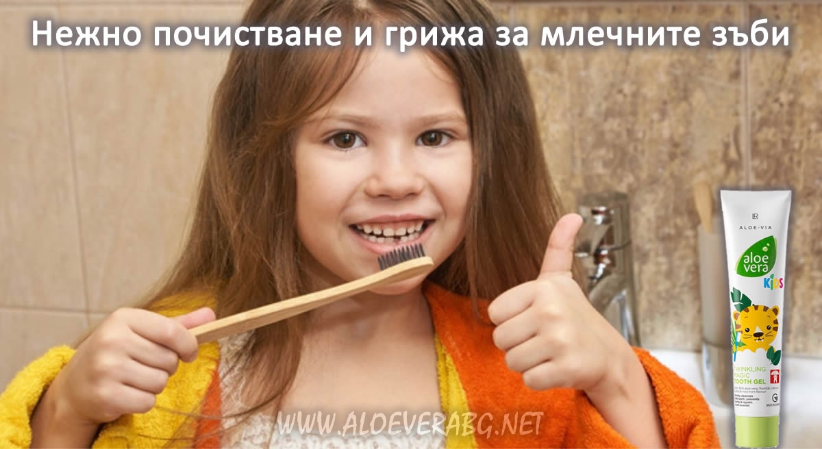 LR Детски комплект - Паста за зъби за деца, Душ Гел за деца и Магическа блестяща пяна за ръце Aloe Vera Kids