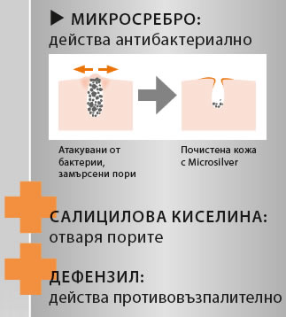 Нечистата кожа е резултат от свръхпроизводството на мастните жлези на кожата. Ако те се запушат, се създават идеални условия за размножаване на микроорганизми. Продуктите за грижа за лице MICROSILVER PLUS почистват кожата и действат срещу нежеланите бактерии.