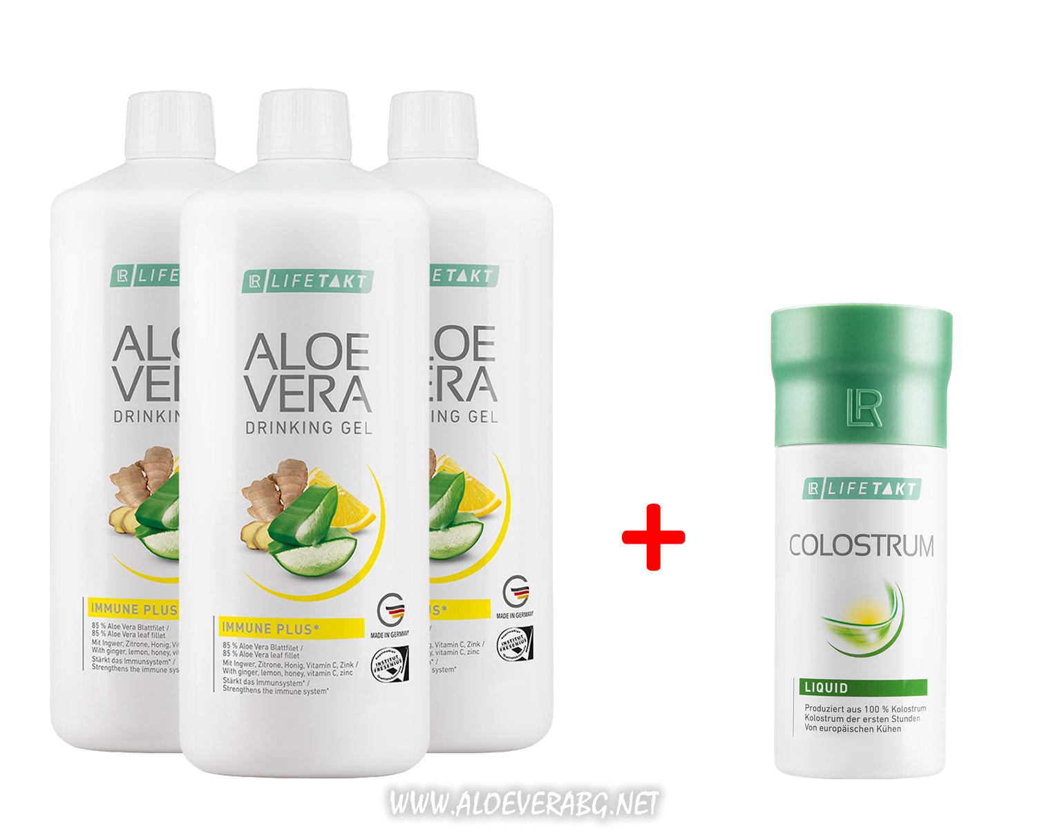 Гел за пиене за Имунната система Aloe Vera Immune Plus, Троен комплект +Течна Коластра за Силна Имунна Система