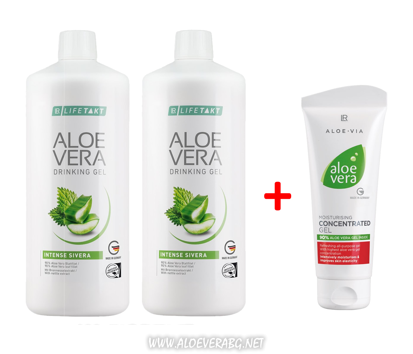 LR Комплект Алое Вера Гел за пиене с коприва при високо кръвно, Двоен комплект + Крем Концентрат Алое Вера за кожни проблеми