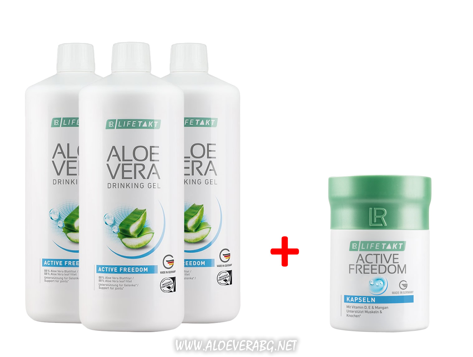 Гел за пиене Алое Вера с Колаген Против Артрит Active Freedom, Троен Комплект + Капсули Active Freedom (Код: 80883-4)