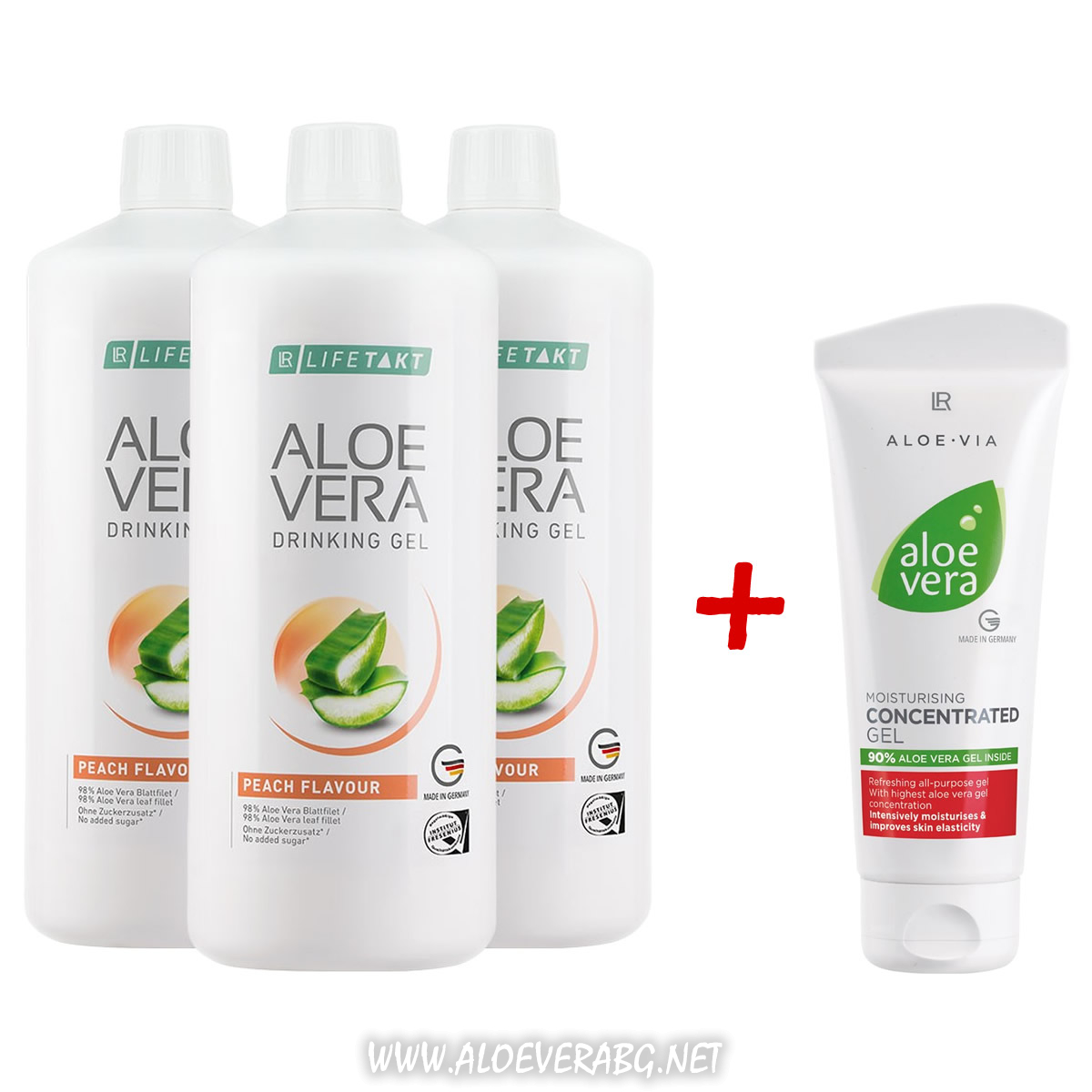 LR Алое Вера гел за пиене с праскова за диабетици, Месечен комплект + Хидратиращ гел-концентрат Aloe Vera