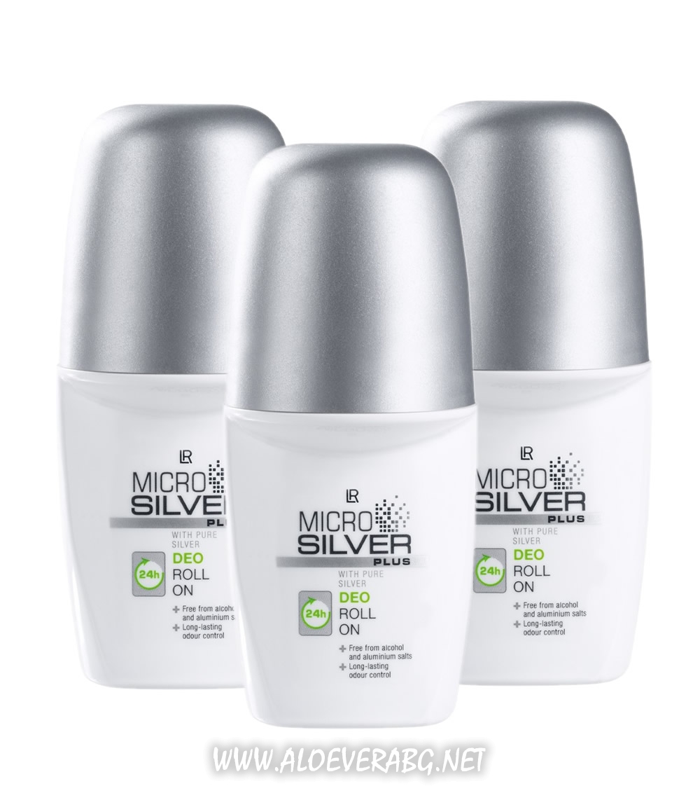 Рол-он дезодорантът LR MICROSILVER PLUS има тройно действие: антибактериално, регулиращо и стабилизиращо. Осигурява до 24 часа надеждна защита от неприятната миризма. Благодарение на комбинацията от микросребро и талк не са използвани алкохол и алуминиеви соли.