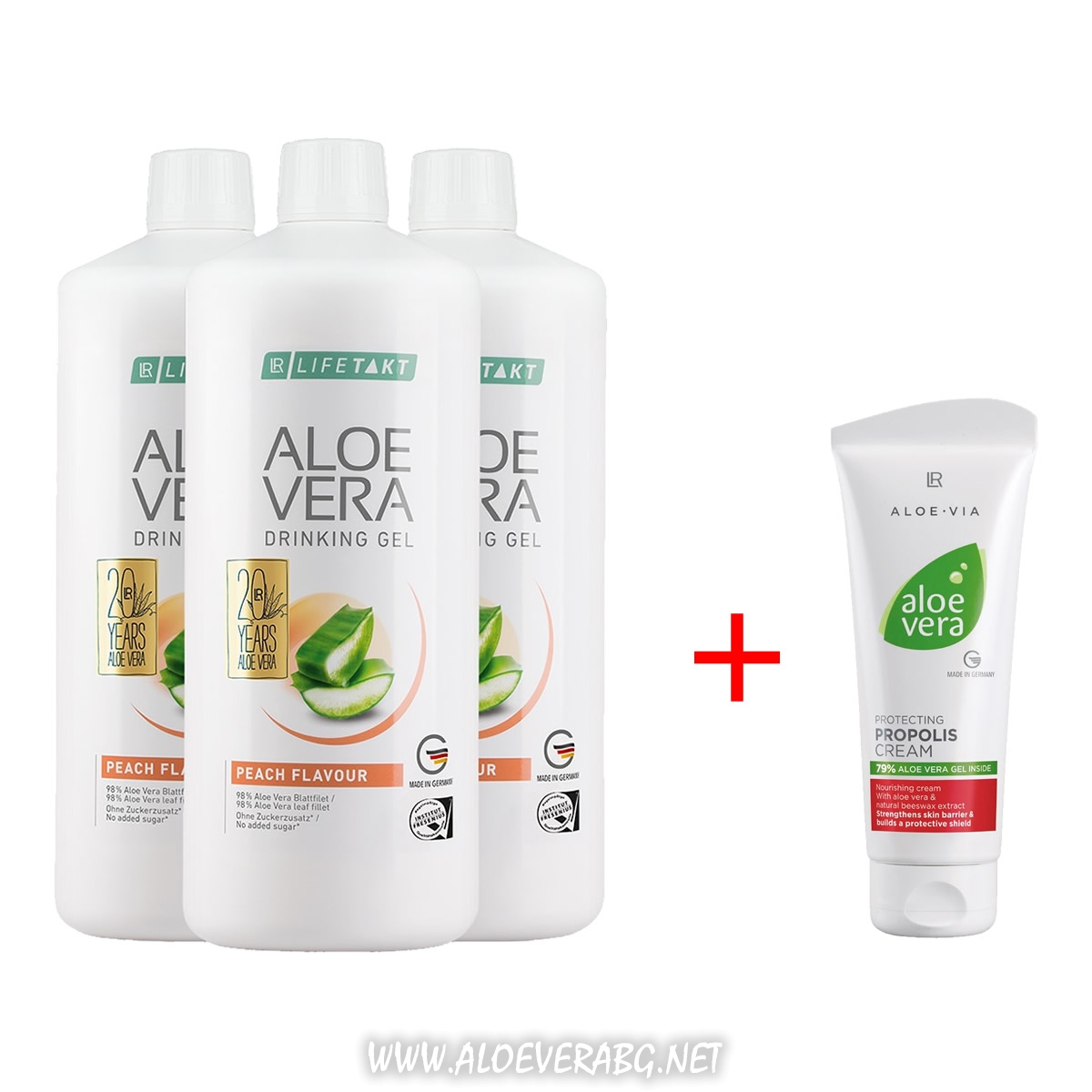 LR Алое Вера гел за пиене с праскова за диабетици, Месечен комплект + Крем Алое Вера с Прополис