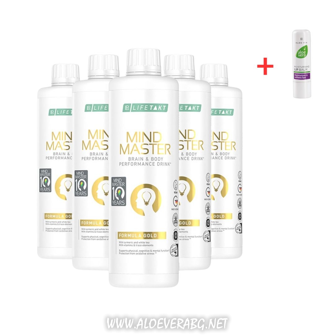 LR Mind Master Formula GOLD - Напитка за Повече Енергия и Работоспособнoст, Петорен комплект + Хидратиращ балсам за устни Алое Вера
